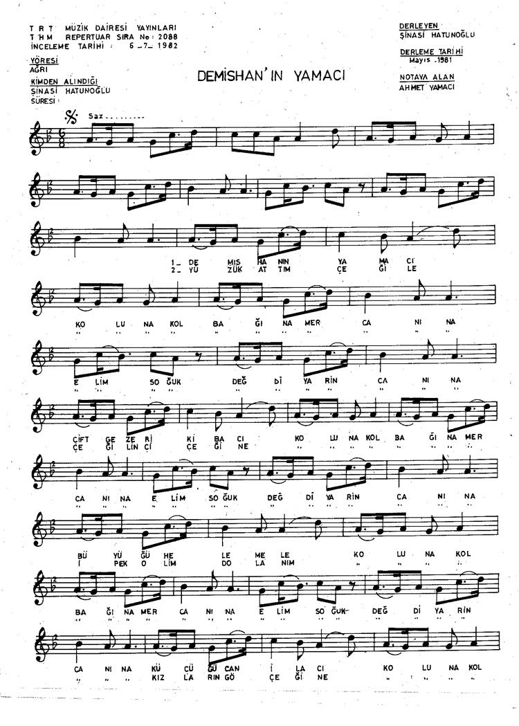 Bu türkünün notasında, sözlerinde veya örnek icrasında bir eksiklik yahut yanlışlık tespit ederseniz, e-mail ile veya WhatsApp hattından bildirim yaparak katkıda bulunabilirsiniz.