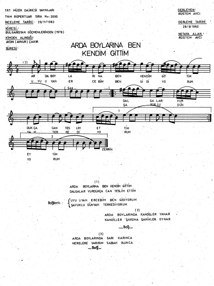 Arda boylarında ben kendim gittim (Rep.No: 2090)