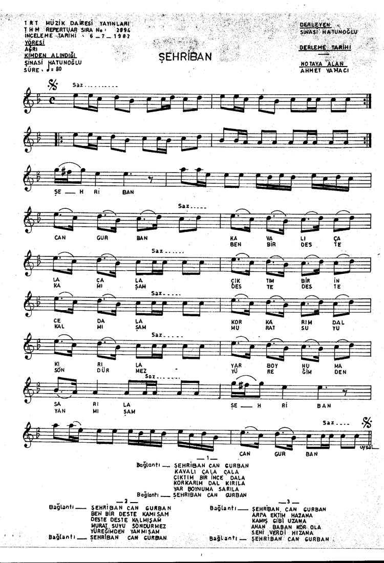 Bu türkünün notasında, sözlerinde veya örnek icrasında bir eksiklik yahut yanlışlık tespit ederseniz, e-mail ile veya WhatsApp hattından bildirim yaparak katkıda bulunabilirsiniz.