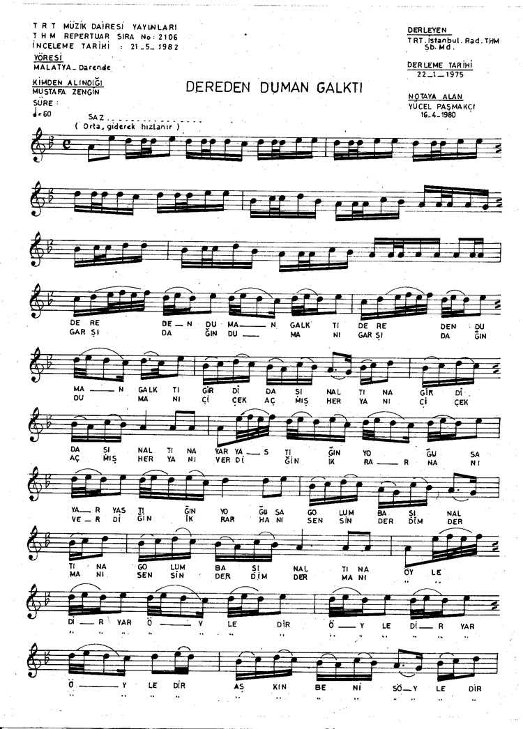 Bu türkünün notasında, sözlerinde veya örnek icrasında bir eksiklik yahut yanlışlık tespit ederseniz, e-mail ile veya WhatsApp hattından bildirim yaparak katkıda bulunabilirsiniz.