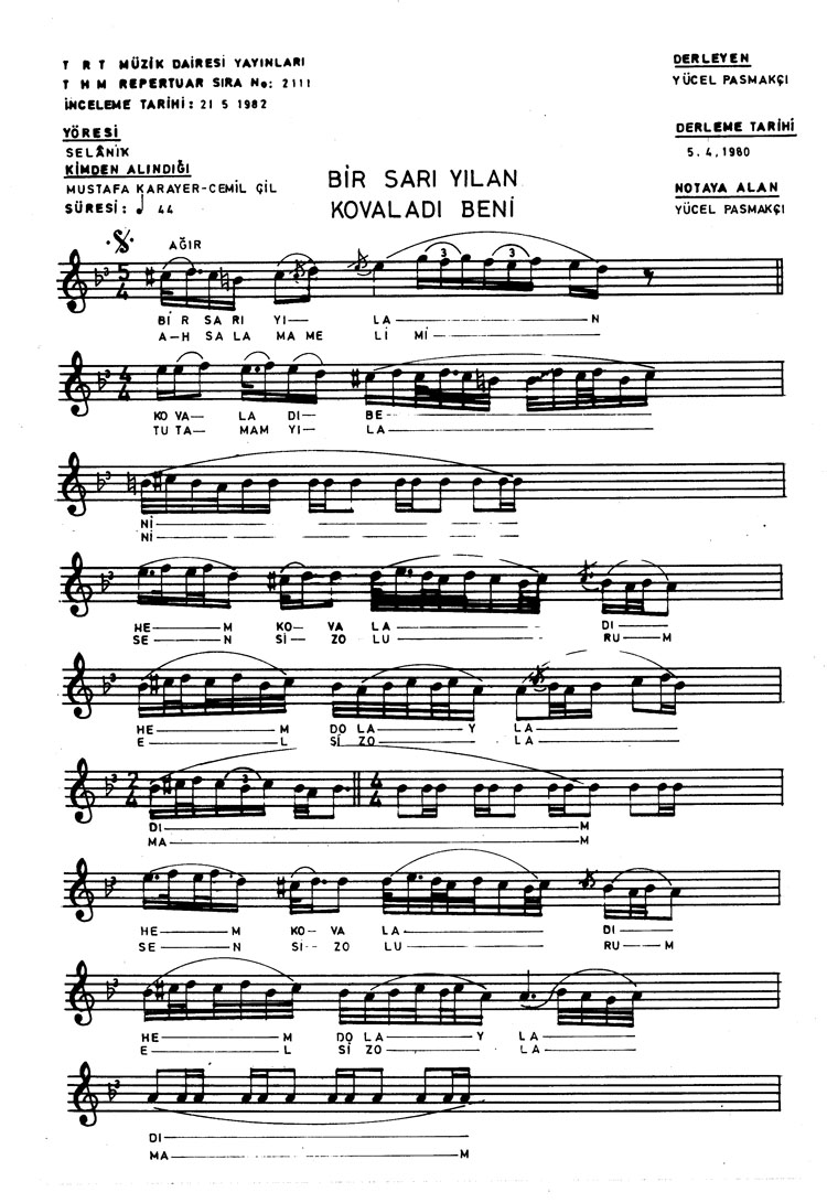 Bir sarı yılan kovaladı beni (Rep.No: 2111)