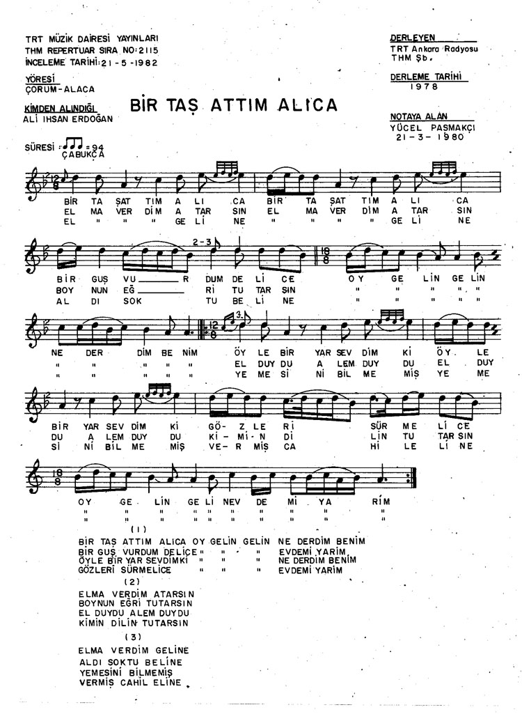 Bu türkünün notasında, sözlerinde veya örnek icrasında bir eksiklik yahut yanlışlık tespit ederseniz, e-mail ile veya WhatsApp hattından bildirim yaparak katkıda bulunabilirsiniz.
