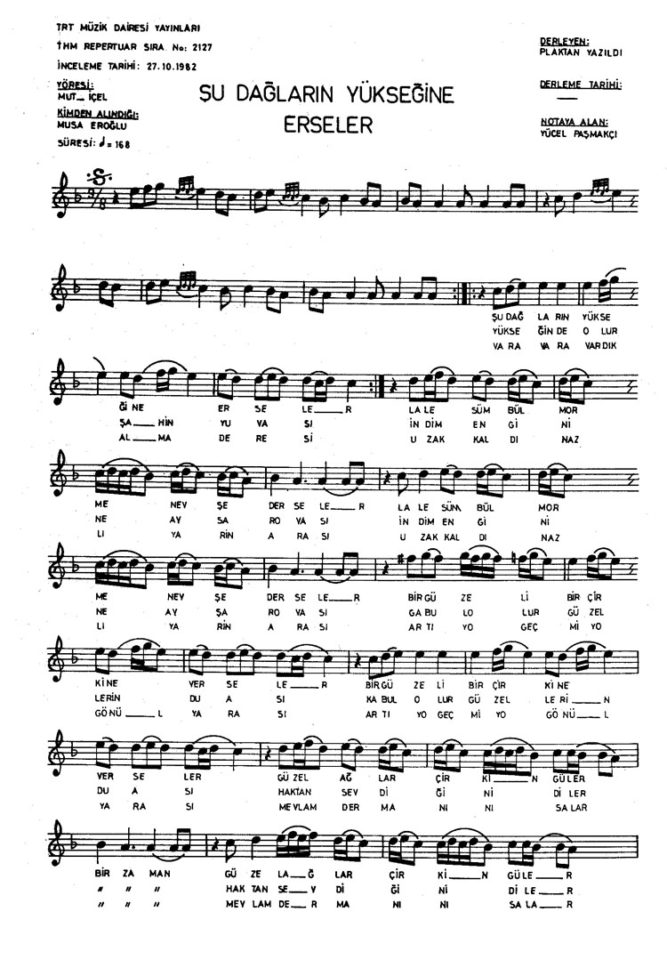 Şu dağların yükseğine erseler (Rep.No: 2127)