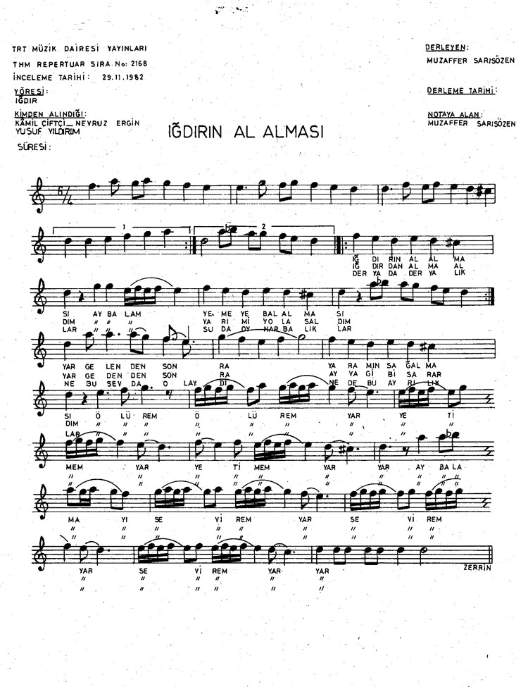 Bu türkünün notasında, sözlerinde veya örnek icrasında bir eksiklik yahut yanlışlık tespit ederseniz, e-mail ile veya WhatsApp hattından bildirim yaparak katkıda bulunabilirsiniz.