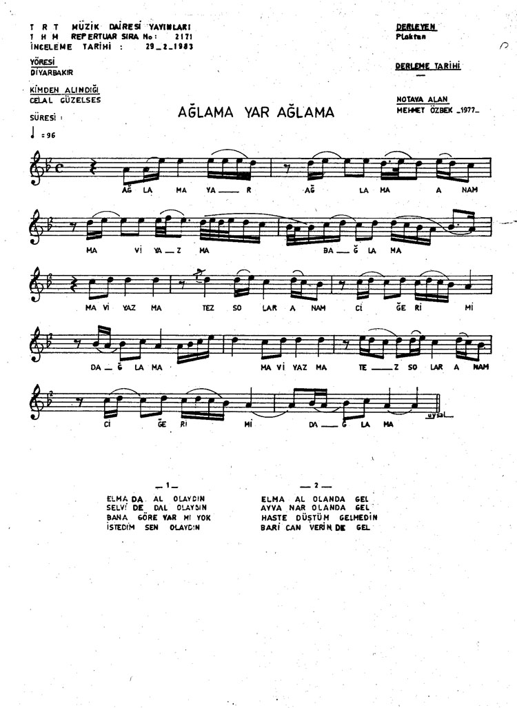 Bu türkünün notasında, sözlerinde veya örnek icrasında bir eksiklik yahut yanlışlık tespit ederseniz, e-mail ile veya WhatsApp hattından bildirim yaparak katkıda bulunabilirsiniz.
