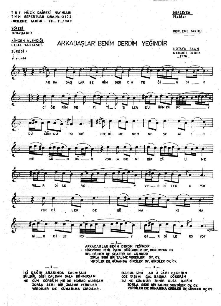 Arkadaşlar benim derdim yeğindir (Rep.No: 2173)