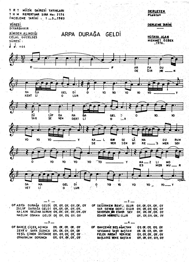 Bu türkünün notasında, sözlerinde veya örnek icrasında bir eksiklik yahut yanlışlık tespit ederseniz, e-mail ile veya WhatsApp hattından bildirim yaparak katkıda bulunabilirsiniz.