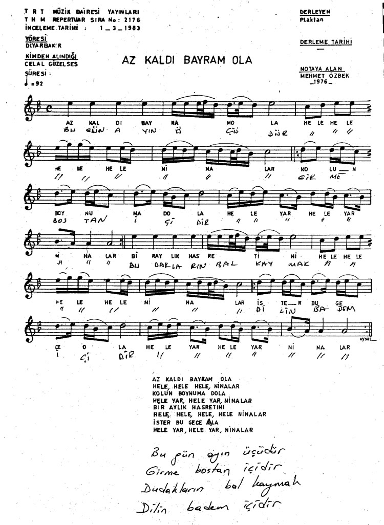 Az kaldı bayram ola (Rep.No: 2176)