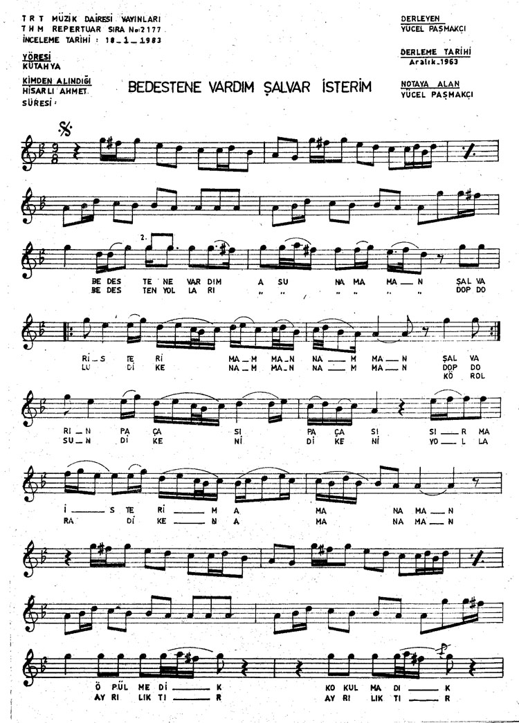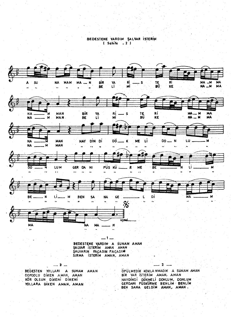 Bu türkünün notasında, sözlerinde veya örnek icrasında bir eksiklik yahut yanlışlık tespit ederseniz, e-mail ile veya WhatsApp hattından bildirim yaparak katkıda bulunabilirsiniz.