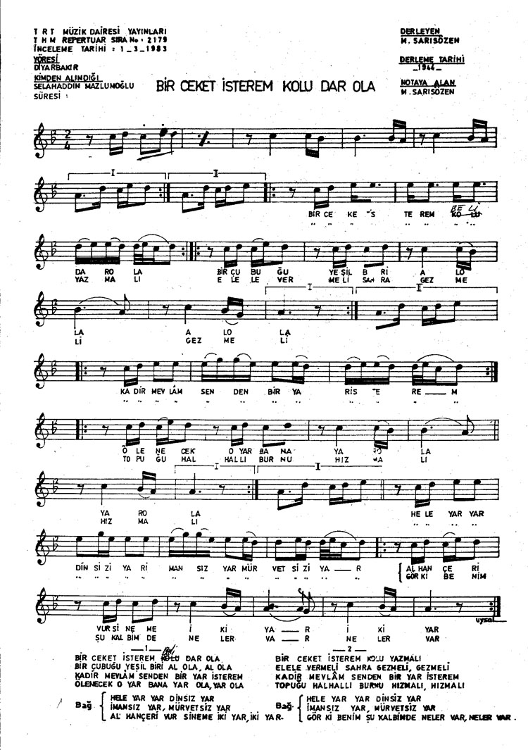 Bir ceket isterem kolu dar ola (Rep.No: 2179)