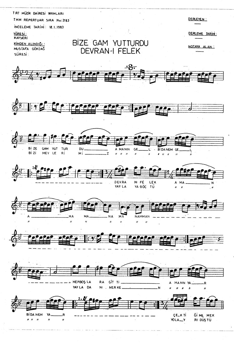 Bize gam yutturdu devran-ı felek (Rep.No: 2183)