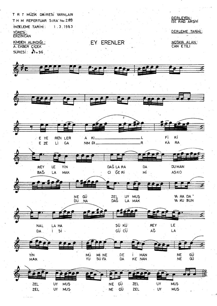 Ey erenler akıl fikir eyleyin (Rep.No: 2189)