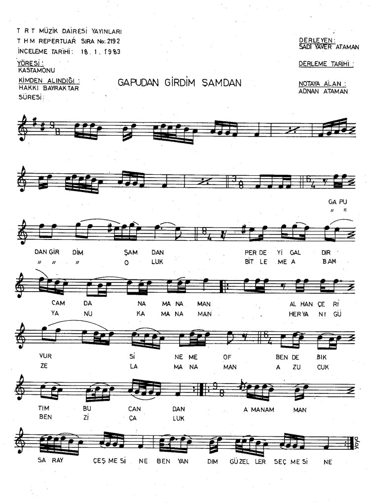 Gapudan girdim şamdan (Rep.No: 2192)