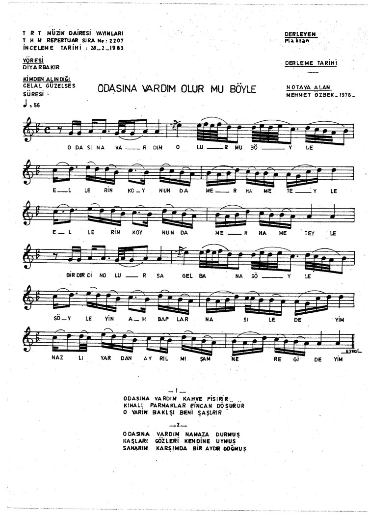 Bu türkünün notasında, sözlerinde veya örnek icrasında bir eksiklik yahut yanlışlık tespit ederseniz, e-mail ile veya WhatsApp hattından bildirim yaparak katkıda bulunabilirsiniz.