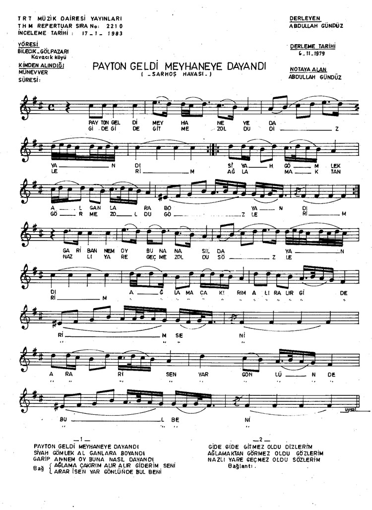 Bu türkünün notasında, sözlerinde veya örnek icrasında bir eksiklik yahut yanlışlık tespit ederseniz, e-mail ile veya WhatsApp hattından bildirim yaparak katkıda bulunabilirsiniz.