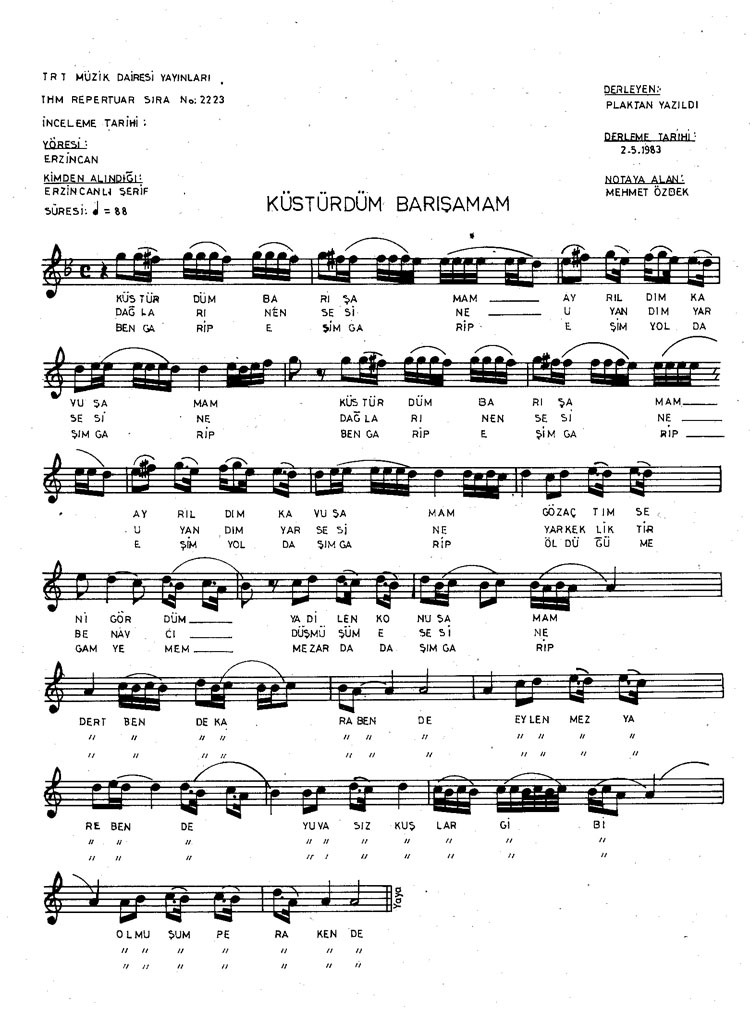 Bu türkünün notasında, sözlerinde veya örnek icrasında bir eksiklik yahut yanlışlık tespit ederseniz, e-mail ile veya WhatsApp hattından bildirim yaparak katkıda bulunabilirsiniz.
