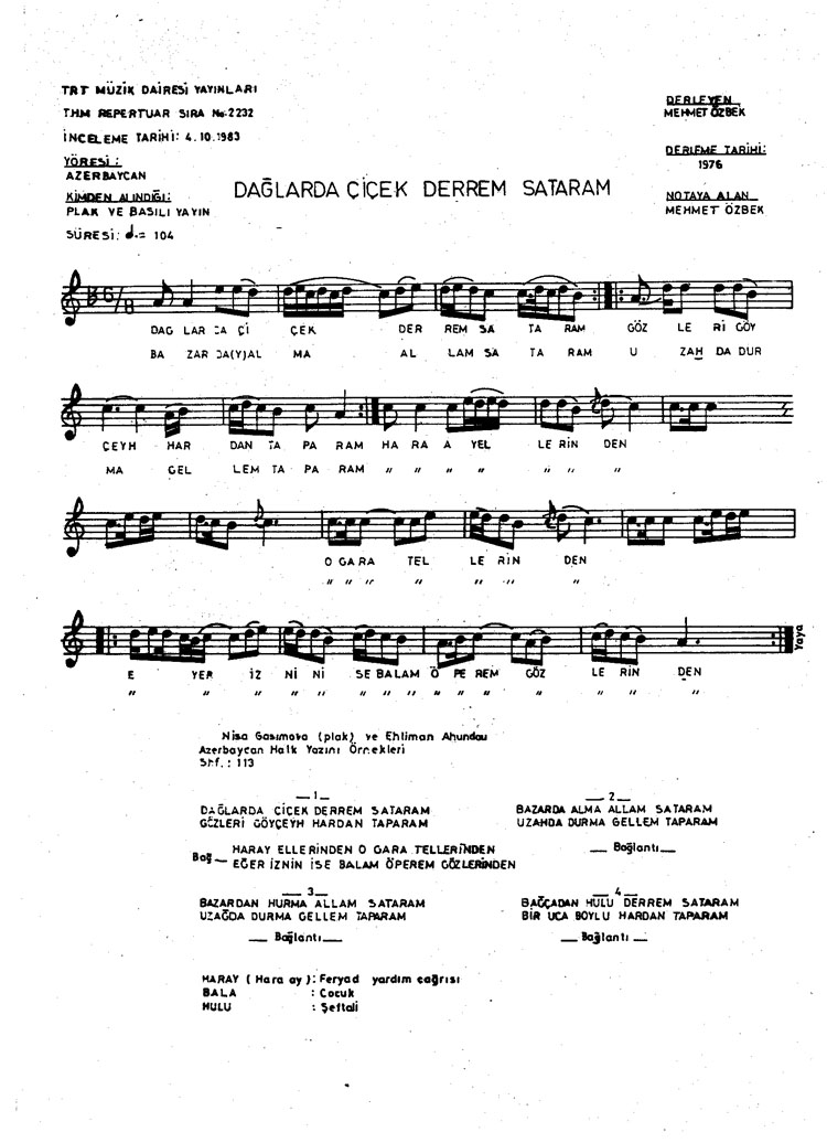 Dağlarda çiçek derrem sataram (Rep.No: 2232)