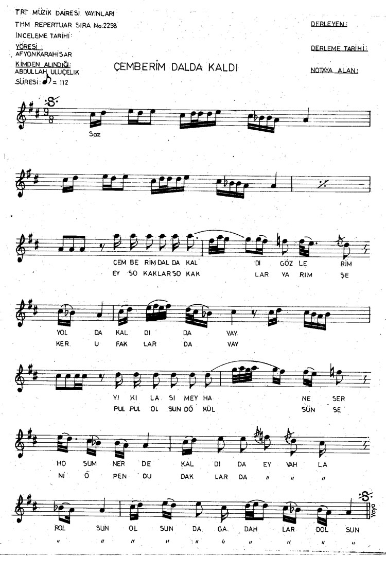 Bu türkünün notasında, sözlerinde veya örnek icrasında bir eksiklik yahut yanlışlık tespit ederseniz, e-mail ile veya WhatsApp hattından bildirim yaparak katkıda bulunabilirsiniz.
