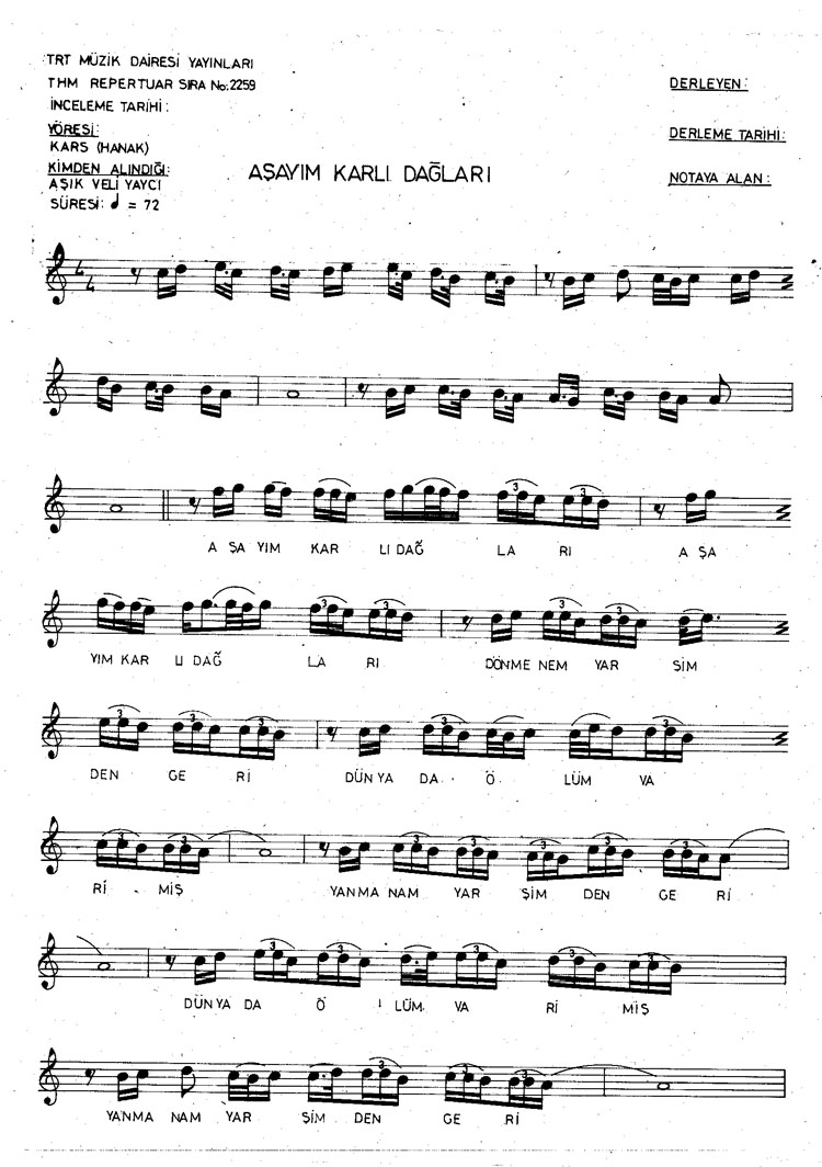 Aşayım karlı dağlar aşayım (Rep.No: 2259)