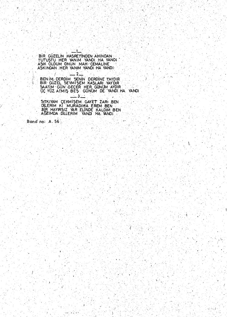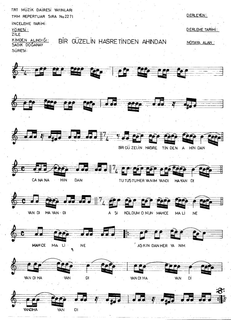 Bir güzelin hasretinden ahından (Rep.No: 2271)
