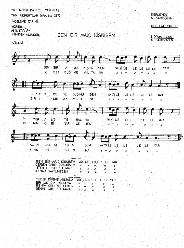 Bu türkünün notasında, sözlerinde veya örnek icrasında bir eksiklik yahut yanlışlık tespit ederseniz, e-mail ile veya WhatsApp hattından bildirim yaparak katkıda bulunabilirsiniz.