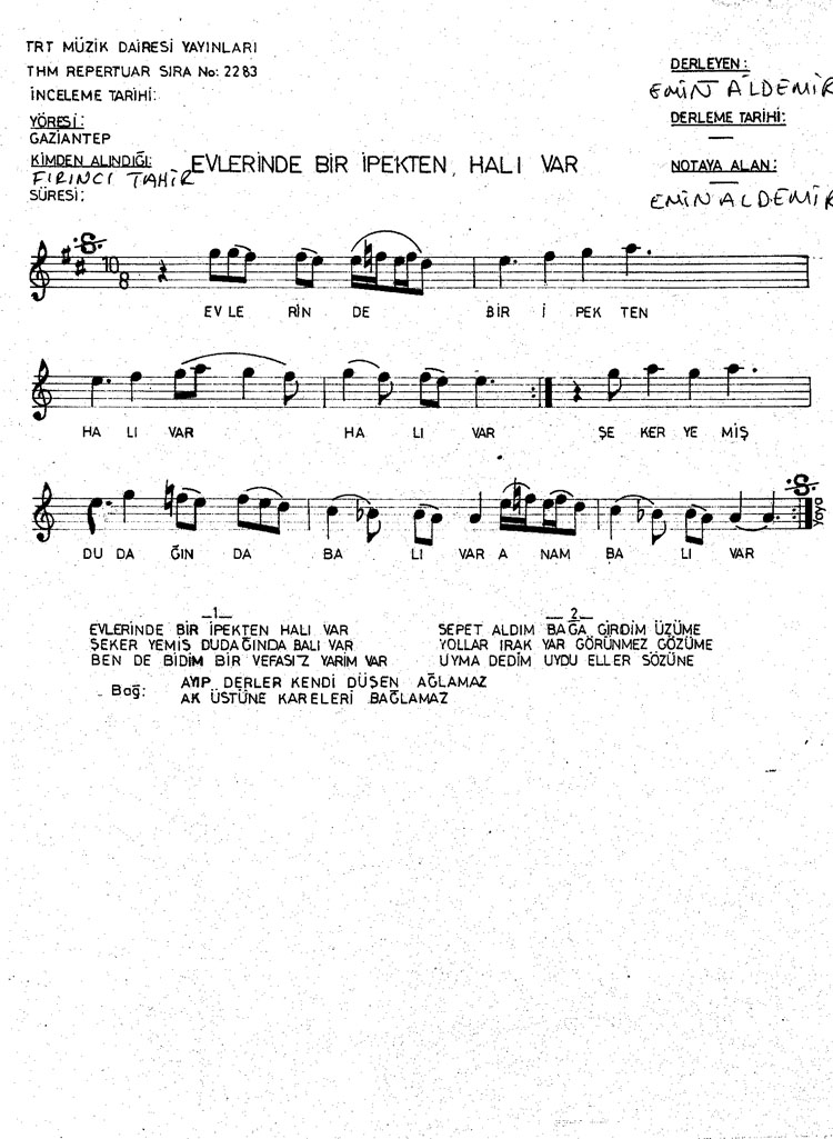 Bu türkünün notasında, sözlerinde veya örnek icrasında bir eksiklik yahut yanlışlık tespit ederseniz, e-mail ile veya WhatsApp hattından bildirim yaparak katkıda bulunabilirsiniz.