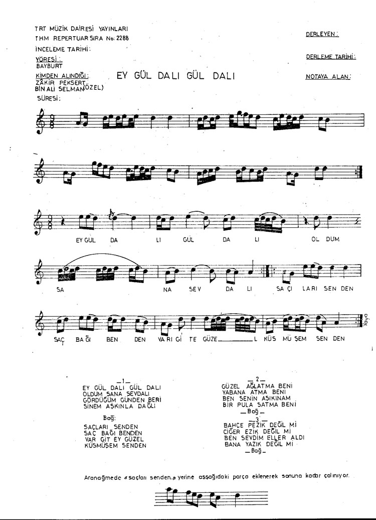 Ey gül dalı gül dalı (Rep.No: 2288)
