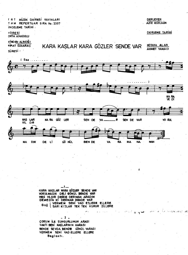 Kara kaşlar kara gözler sende var (Rep.No: 2307)