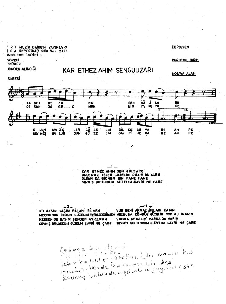 Bu türkünün notasında, sözlerinde veya örnek icrasında bir eksiklik yahut yanlışlık tespit ederseniz, e-mail ile veya WhatsApp hattından bildirim yaparak katkıda bulunabilirsiniz.