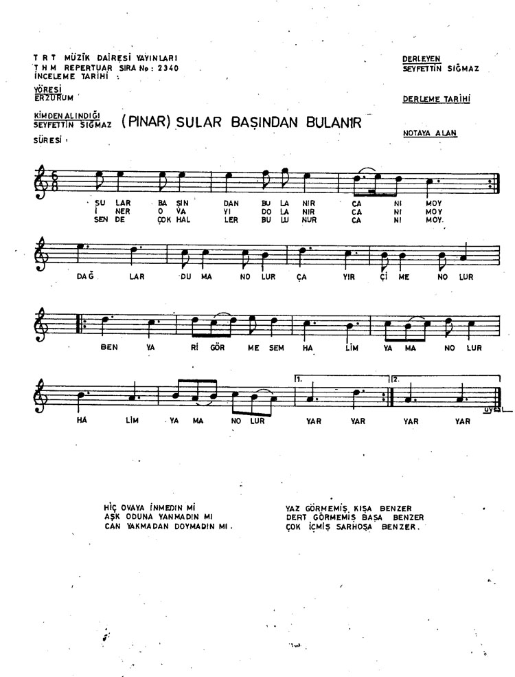 Bu türkünün notasında, sözlerinde veya örnek icrasında bir eksiklik yahut yanlışlık tespit ederseniz, e-mail ile veya WhatsApp hattından bildirim yaparak katkıda bulunabilirsiniz.