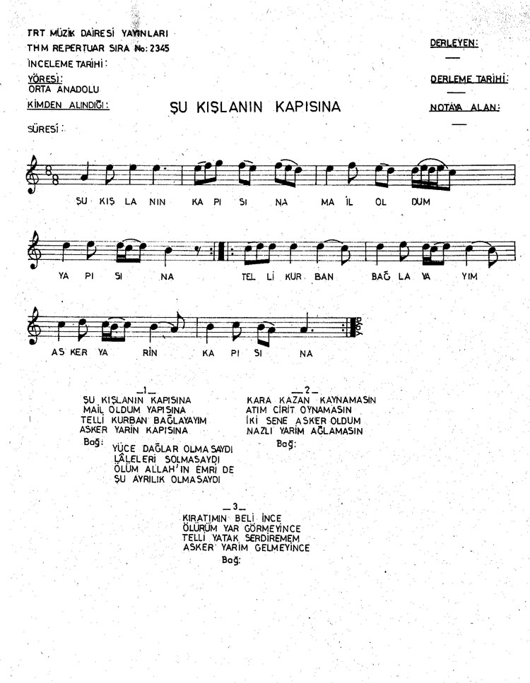 Şu kışlanın kapısına (Rep.No: 2345)