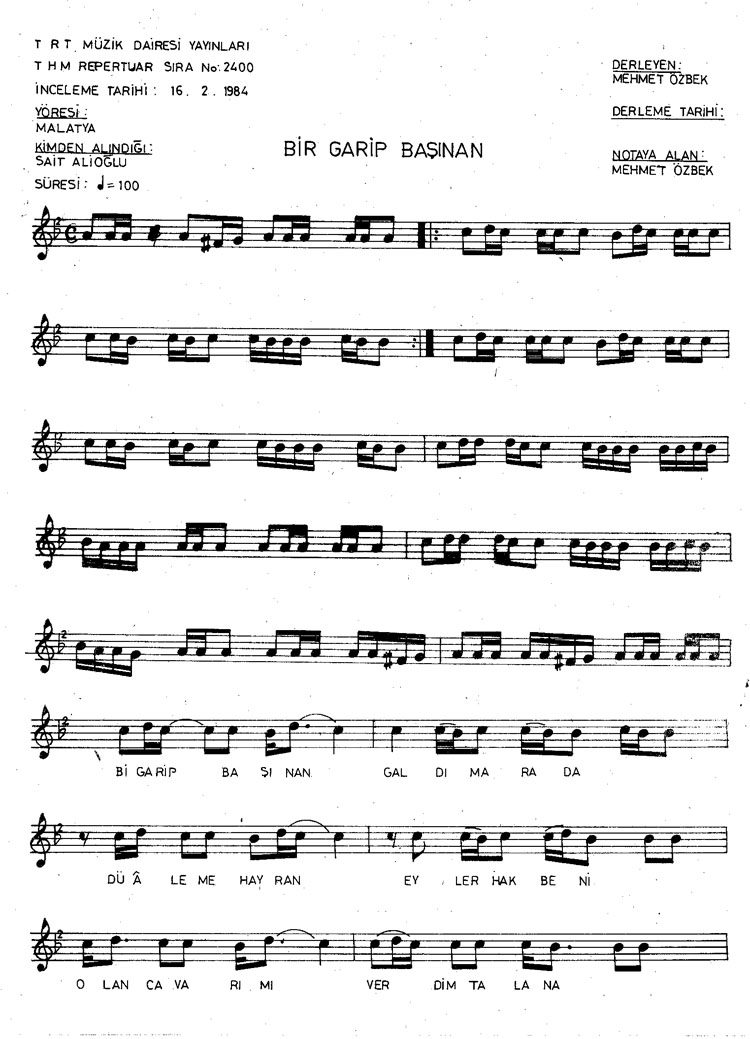 Bir garip başınan galdım arada (Rep.No: 2400)