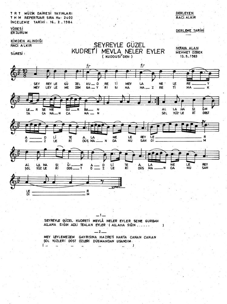 Seyreyle güzel Kudret-i Mevla neler eyler (Rep.No: 2402)