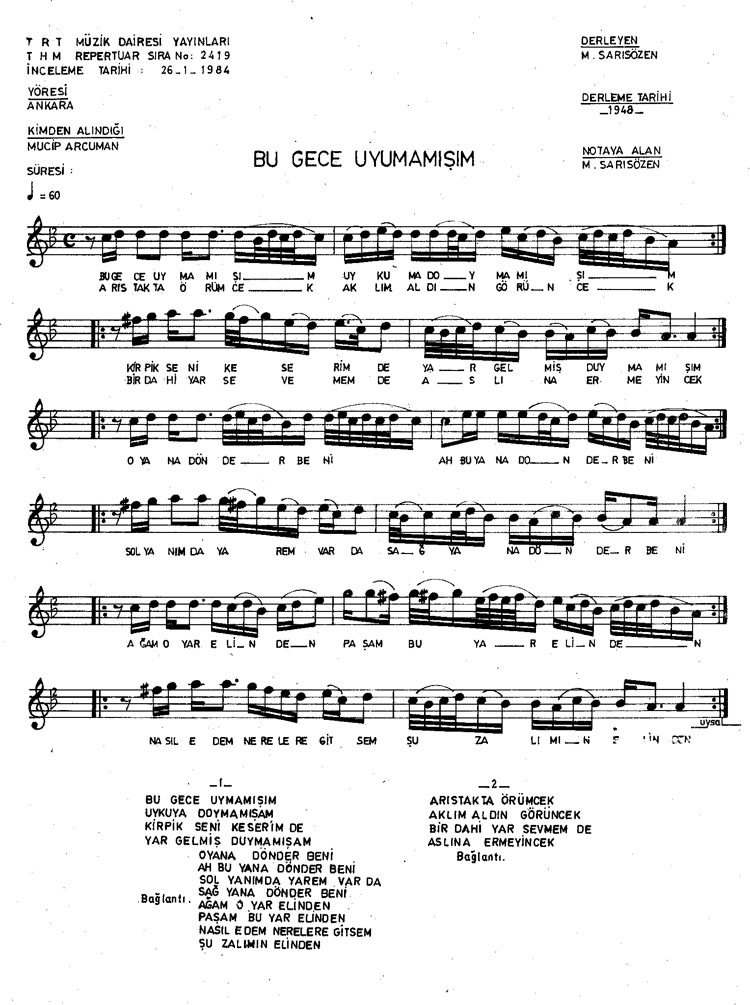 Bu gece uymamışım (Rep.No: 2419)