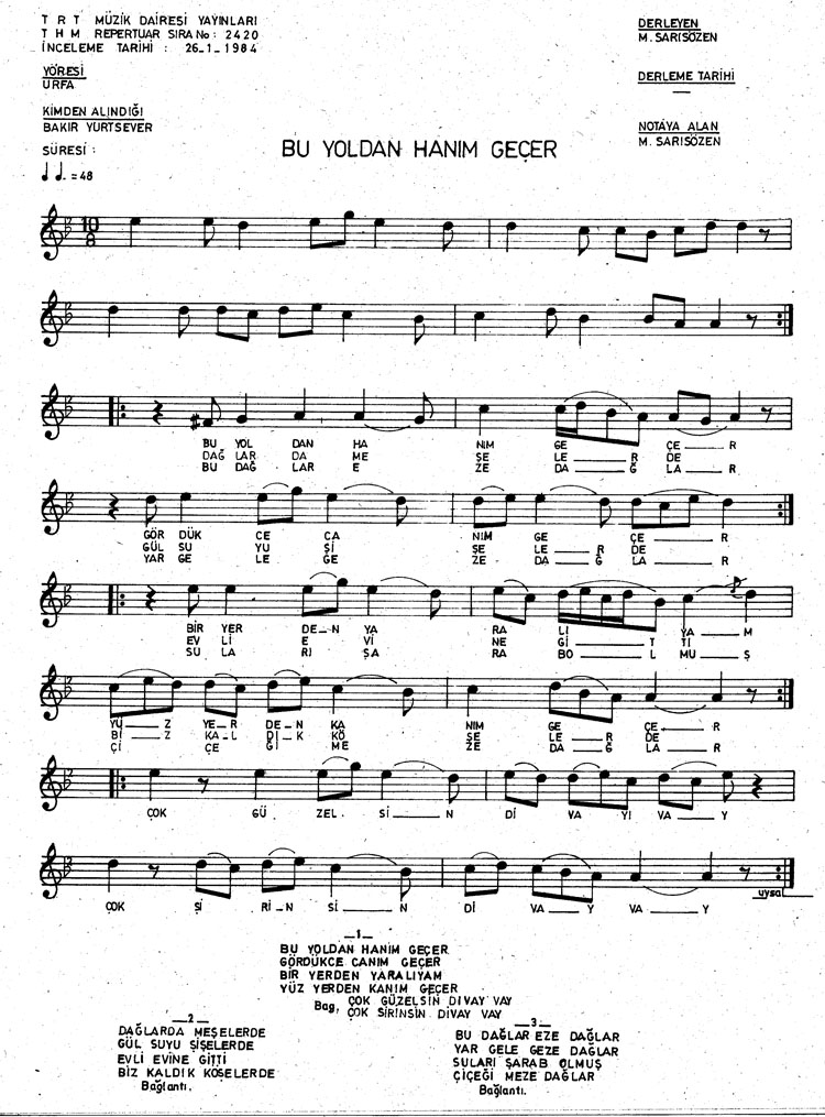 Bu türkünün notasında, sözlerinde veya örnek icrasında bir eksiklik yahut yanlışlık tespit ederseniz, e-mail ile veya WhatsApp hattından bildirim yaparak katkıda bulunabilirsiniz.