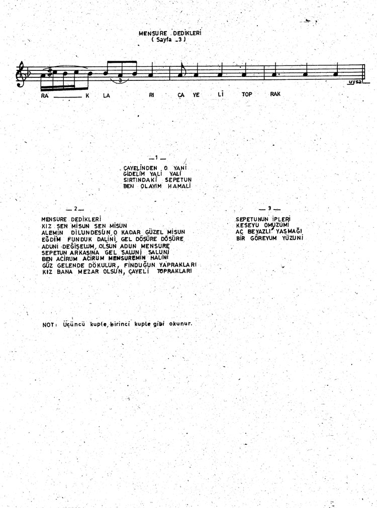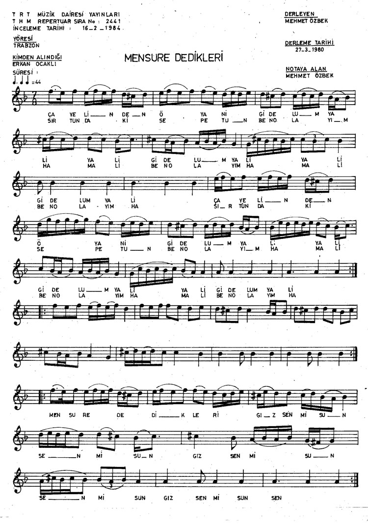 Bu türkünün notasında, sözlerinde veya örnek icrasında bir eksiklik yahut yanlışlık tespit ederseniz, e-mail ile veya WhatsApp hattından bildirim yaparak katkıda bulunabilirsiniz.