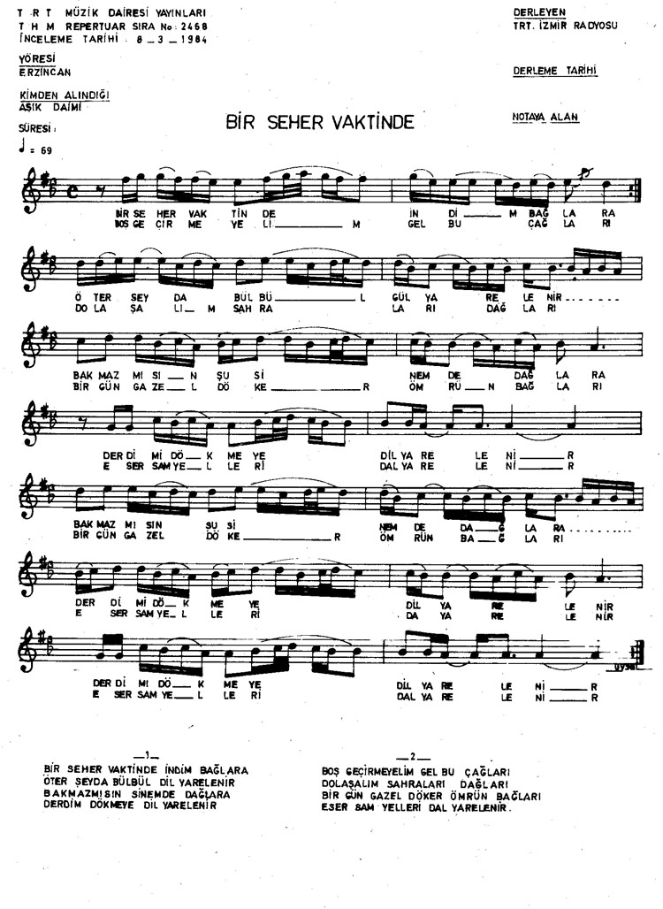 Bir seher vaktinde indim bağlara (Rep.No: 2468)