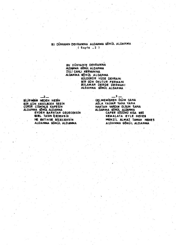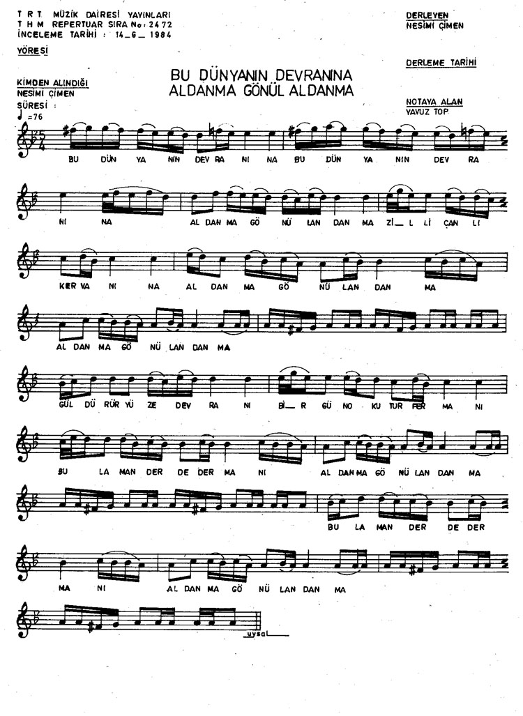 Bu türkünün notasında, sözlerinde veya örnek icrasında bir eksiklik yahut yanlışlık tespit ederseniz, e-mail ile veya WhatsApp hattından bildirim yaparak katkıda bulunabilirsiniz.