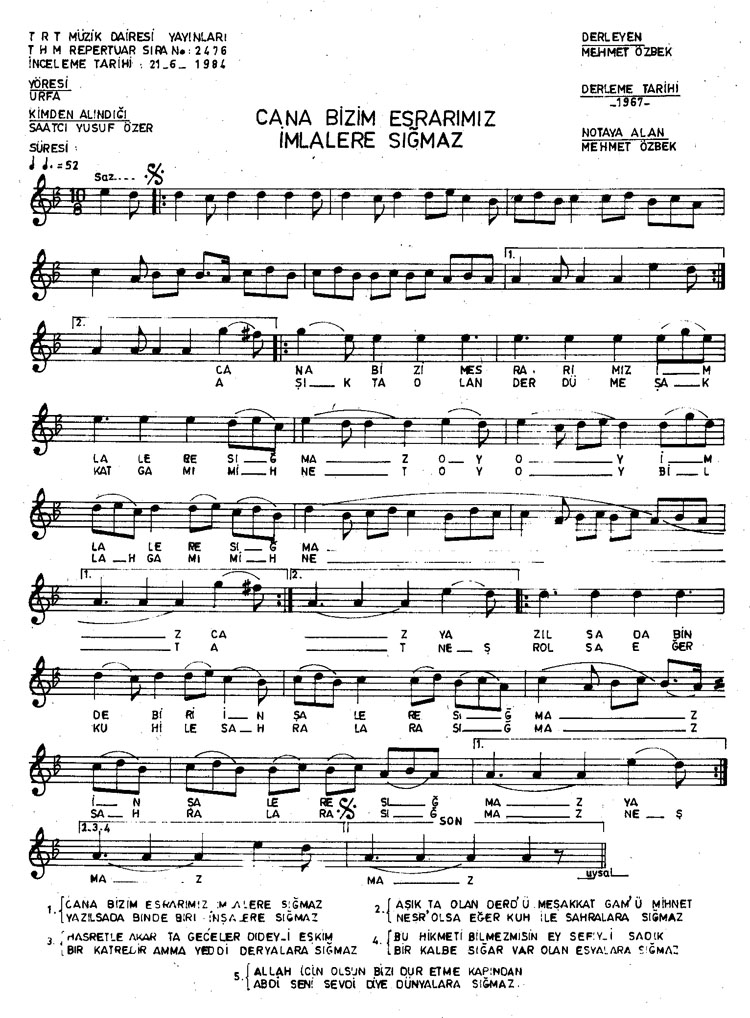 Cana bizim esrarımız imlalere sığmaz (Rep.No: 2476)