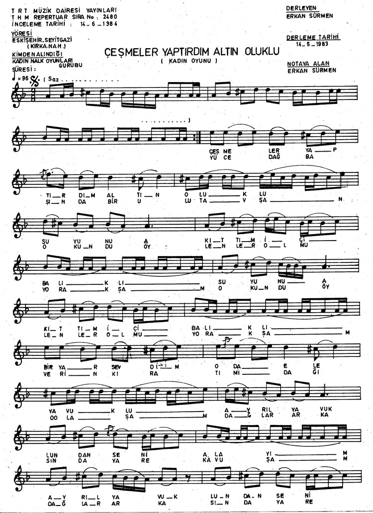 Bu türkünün notasında, sözlerinde veya örnek icrasında bir eksiklik yahut yanlışlık tespit ederseniz, e-mail ile veya WhatsApp hattından bildirim yaparak katkıda bulunabilirsiniz.