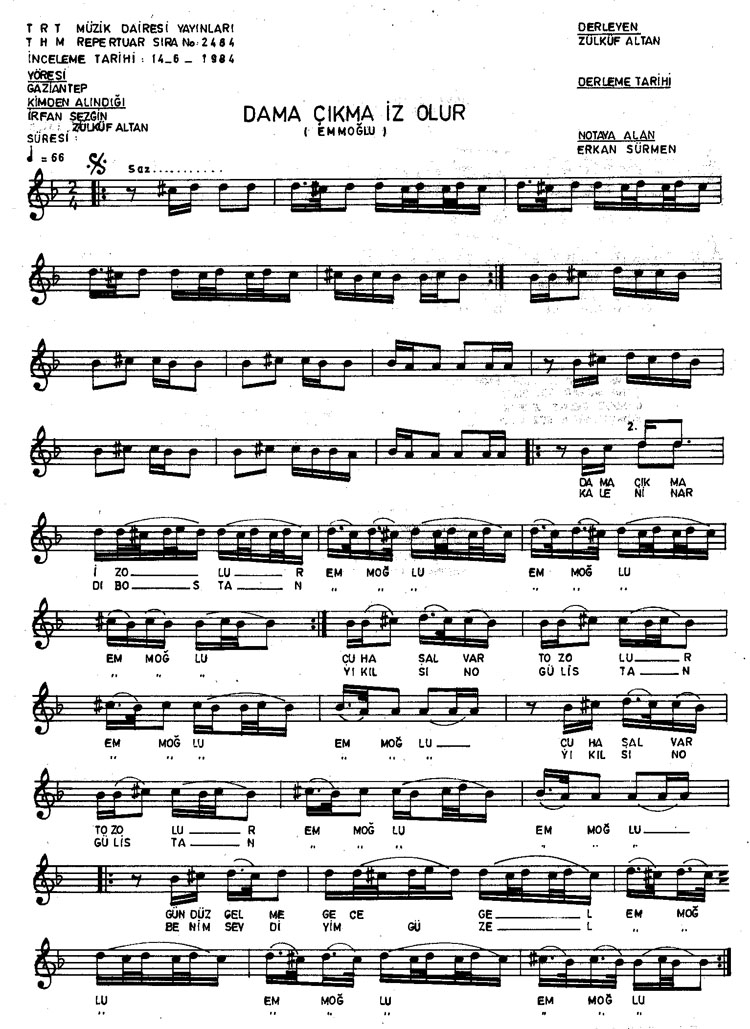 Bu türkünün notasında, sözlerinde veya örnek icrasında bir eksiklik yahut yanlışlık tespit ederseniz, e-mail ile veya WhatsApp hattından bildirim yaparak katkıda bulunabilirsiniz.