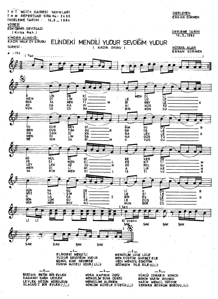 Bu türkünün notasında, sözlerinde veya örnek icrasında bir eksiklik yahut yanlışlık tespit ederseniz, e-mail ile veya WhatsApp hattından bildirim yaparak katkıda bulunabilirsiniz.