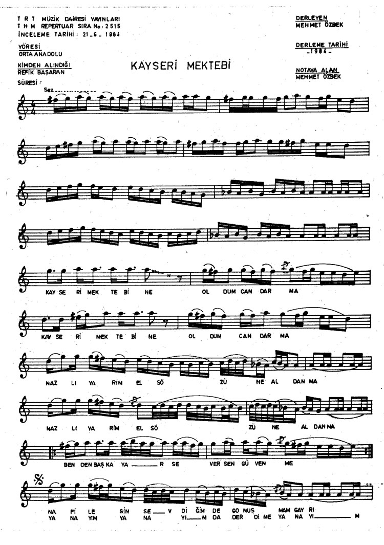 Kayseri mektebine oldum candarma (Rep.No: 2515)