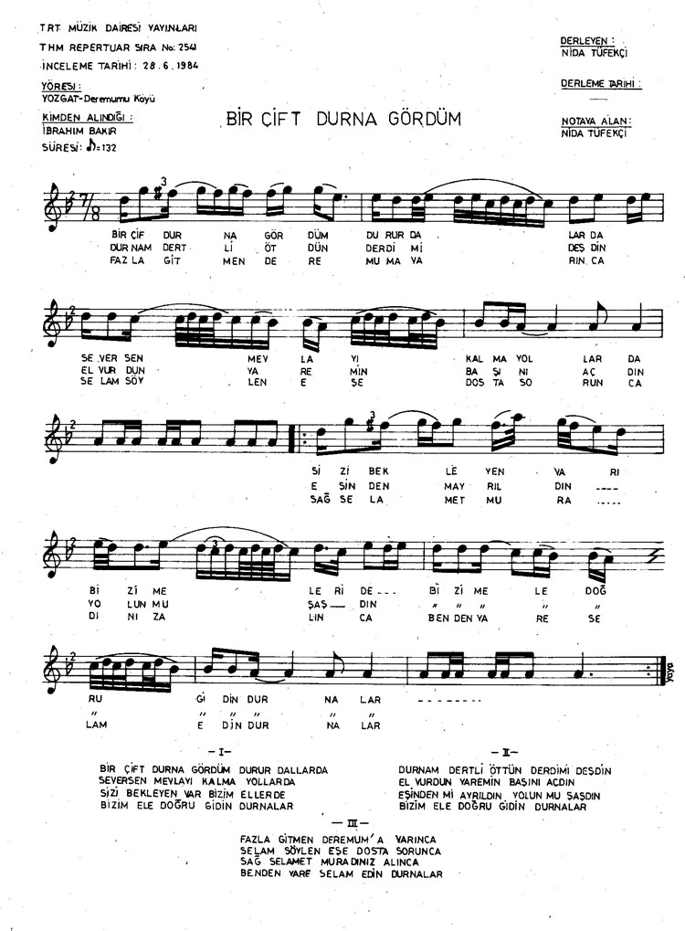 Bir çift durna gördüm durur dallarda (Rep.No: 2541)