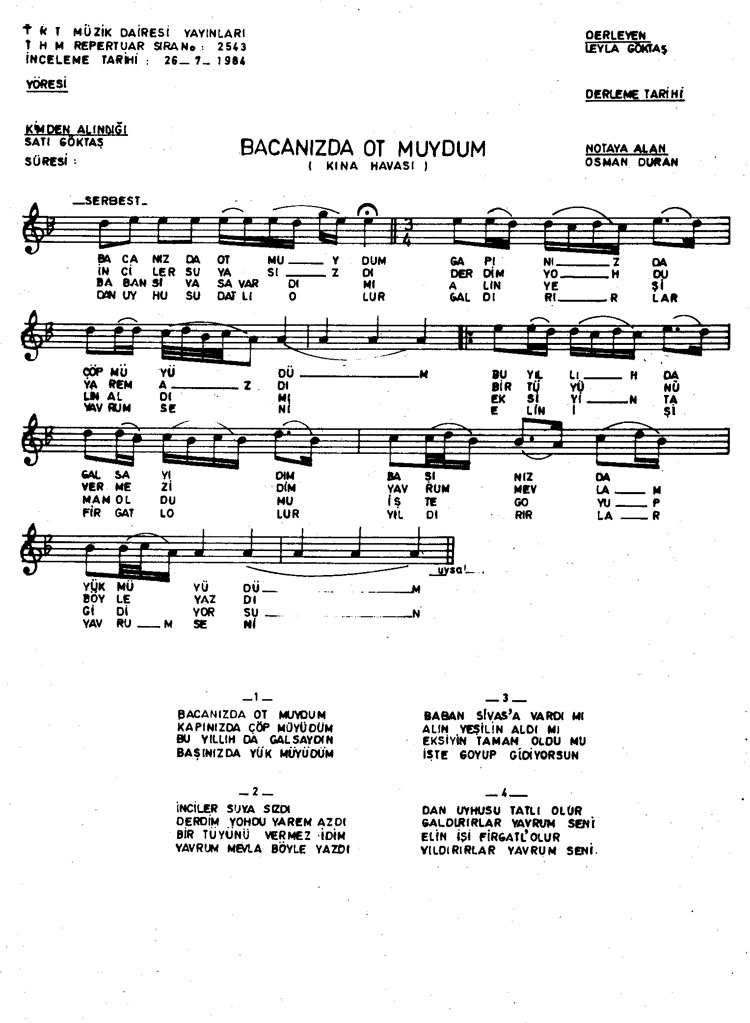 Bu türkünün notasında, sözlerinde veya örnek icrasında bir eksiklik yahut yanlışlık tespit ederseniz, e-mail ile veya WhatsApp hattından bildirim yaparak katkıda bulunabilirsiniz.