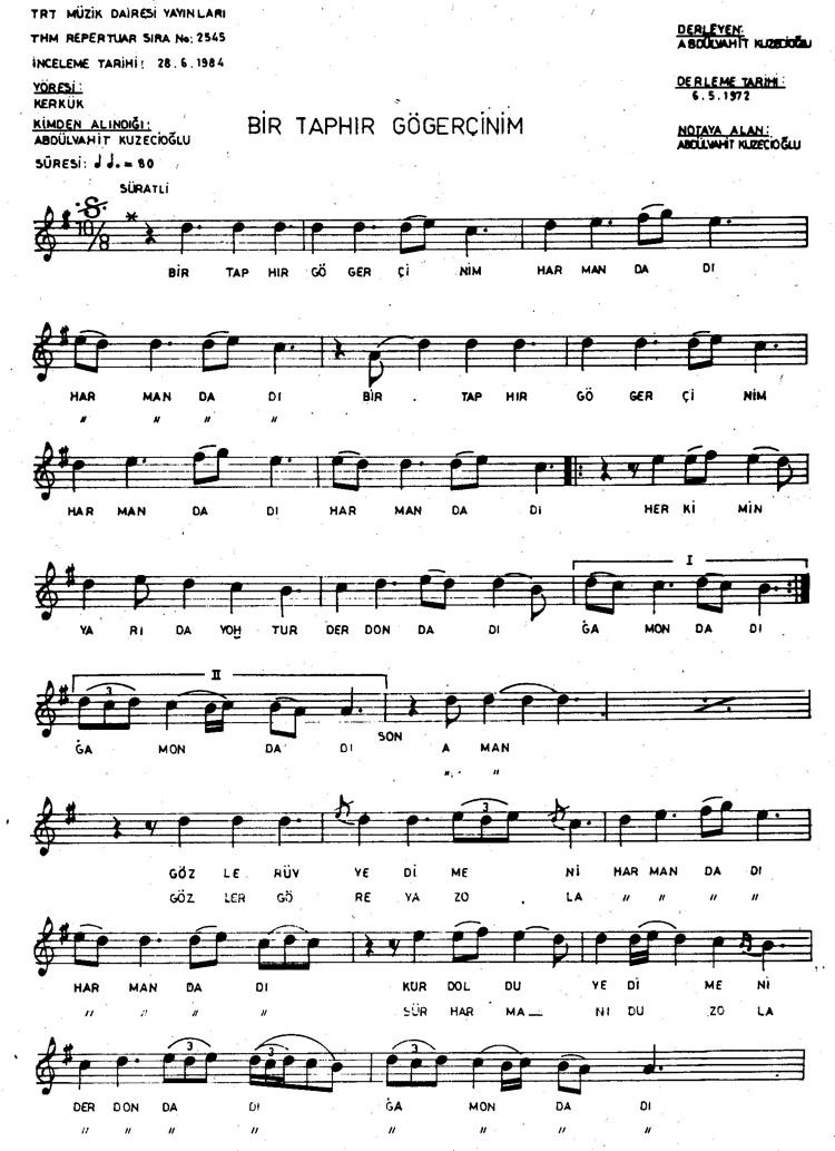 Bu türkünün notasında, sözlerinde veya örnek icrasında bir eksiklik yahut yanlışlık tespit ederseniz, e-mail ile veya WhatsApp hattından bildirim yaparak katkıda bulunabilirsiniz.