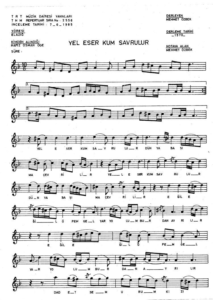 Bu türkünün notasında, sözlerinde veya örnek icrasında bir eksiklik yahut yanlışlık tespit ederseniz, e-mail ile veya WhatsApp hattından bildirim yaparak katkıda bulunabilirsiniz.