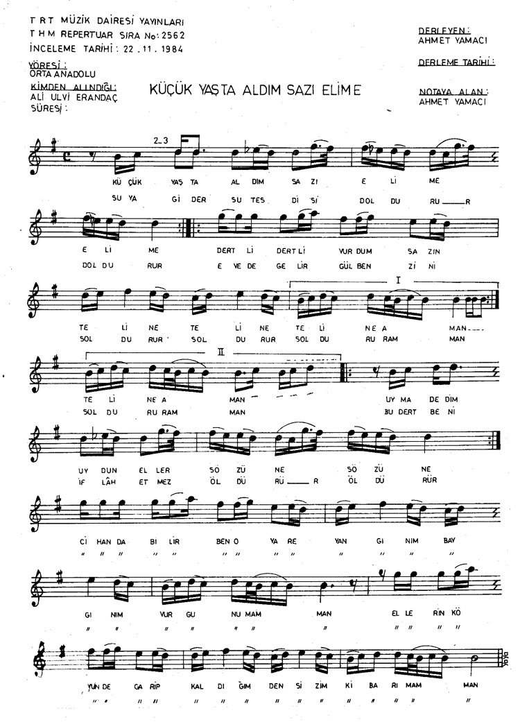 Küçük yaşta aldım sazı elime (Rep.No: 2562)