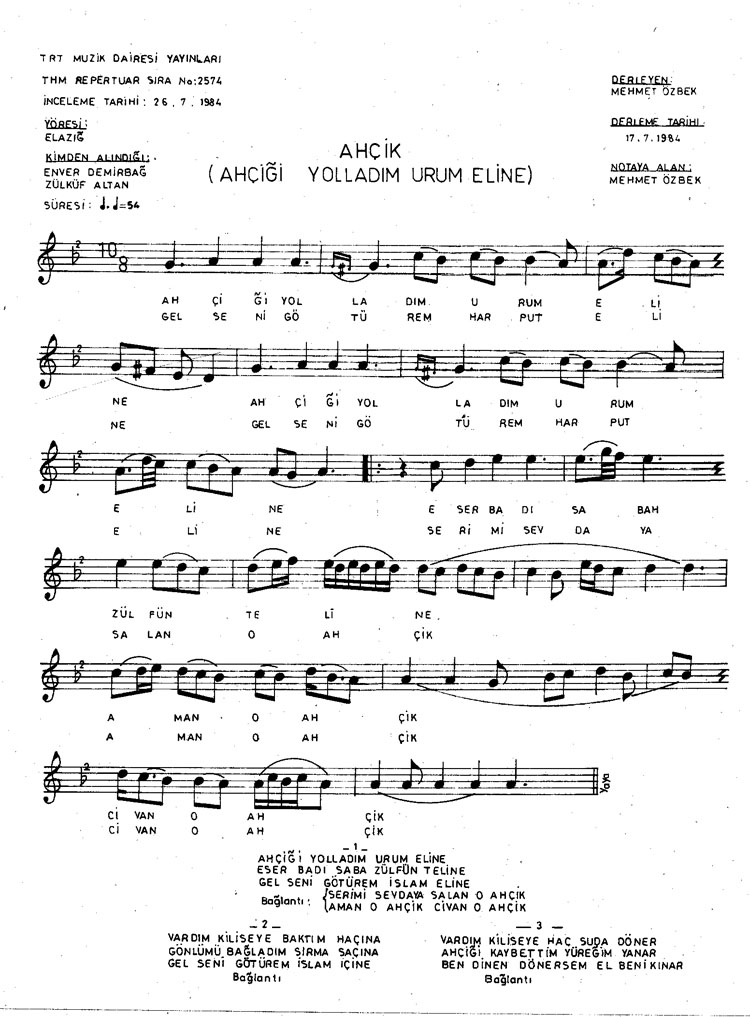 Ahçiği yolladım Urum eline (Rep.No: 2574)