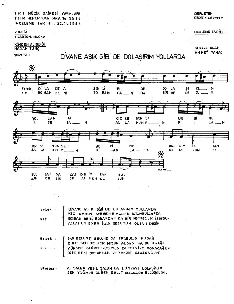 Divane aşık gibi dolaşırım yollarda (Rep.No: 2598)